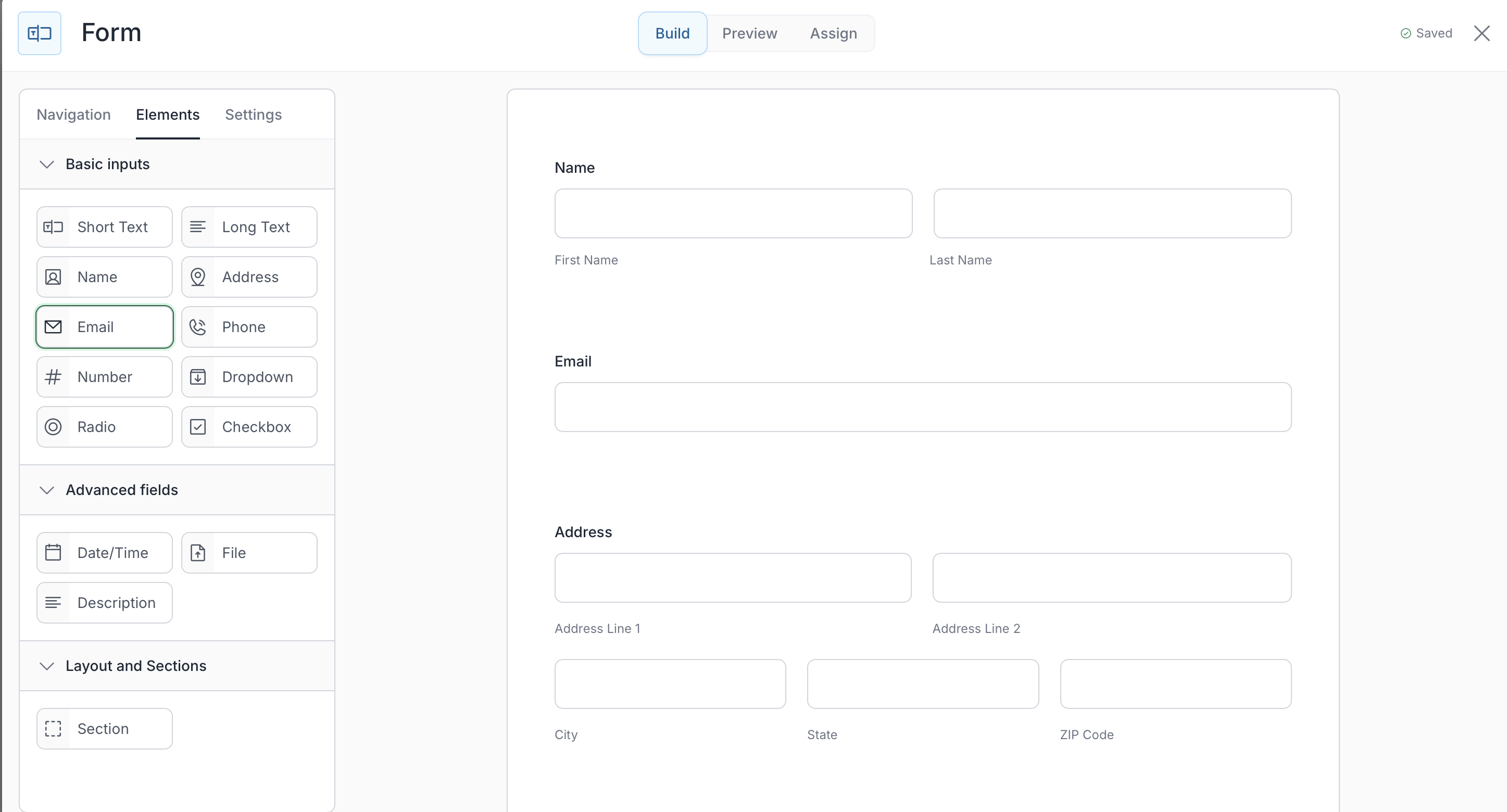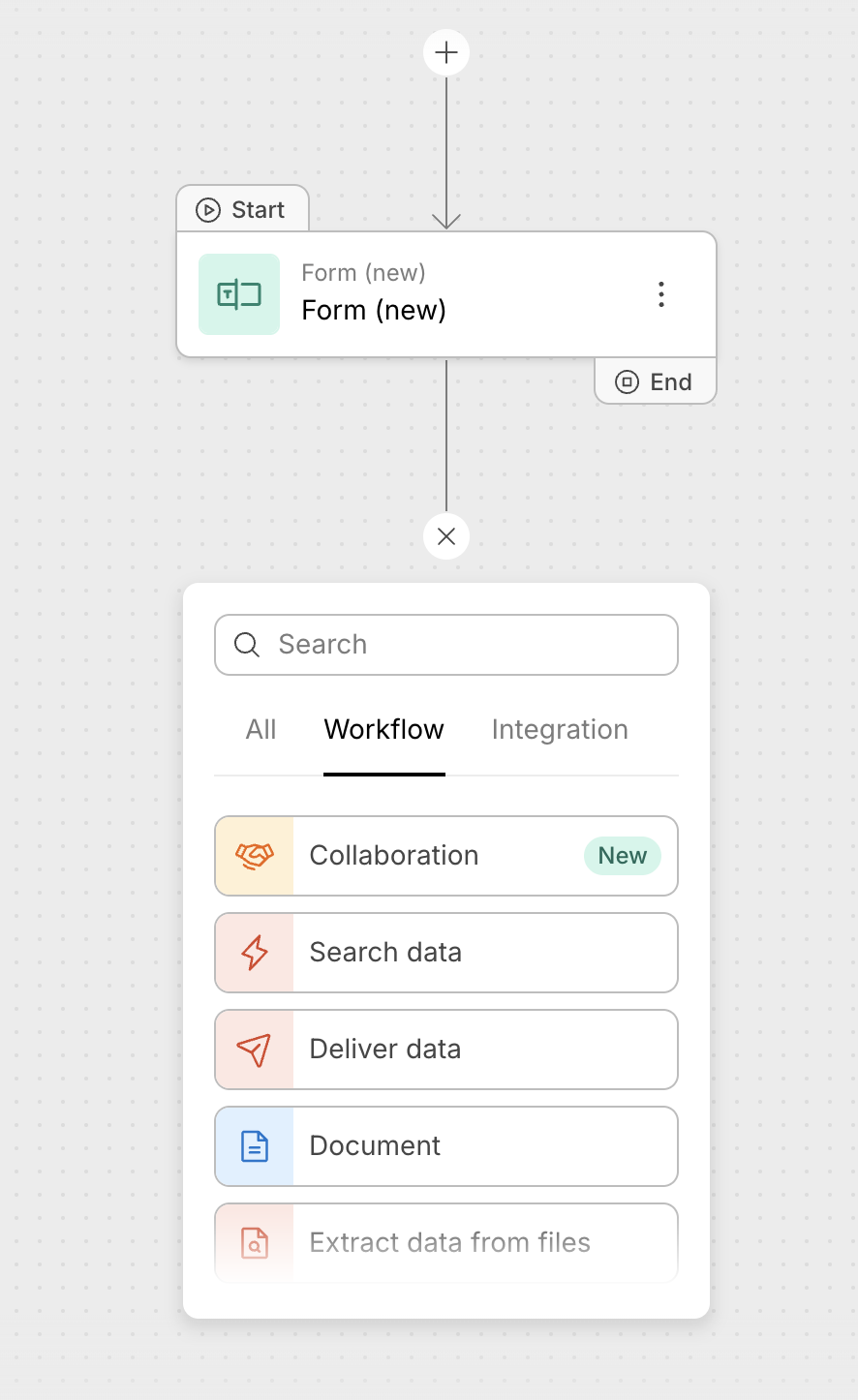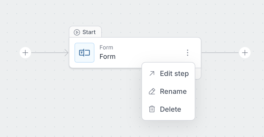 Click Add Step to open a menu of options. In this guide, we’ll start with a Form step, since many workflows begin by collecting information from users.