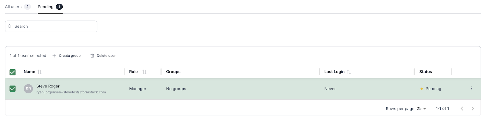 Additionally, this section allows you to manage user groups and see which users are still pending activation.