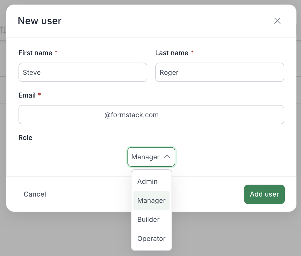 - Role: Set the user's role within the platform. In this example, we’ll assign Steve Rogers as a manager .
