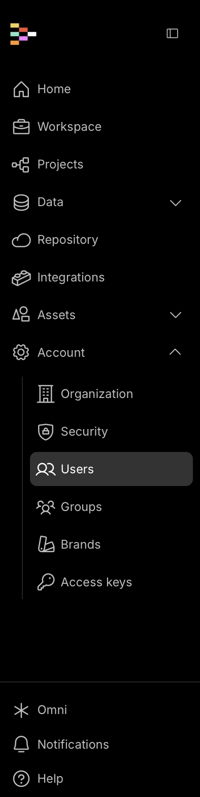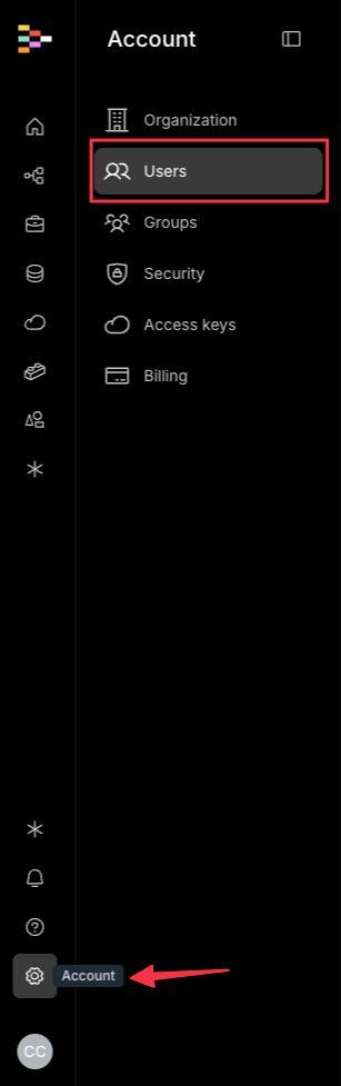 To begin, navigate to the account Icon on the platform’s main interface at the bottom left. Click on it and select Users to open the user management section.