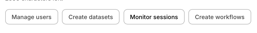 Below the message field, you will see suggested tasks based on the assigned role. These are pre-defined per role and provide guidance on common activities for that user type. They are not customizable.