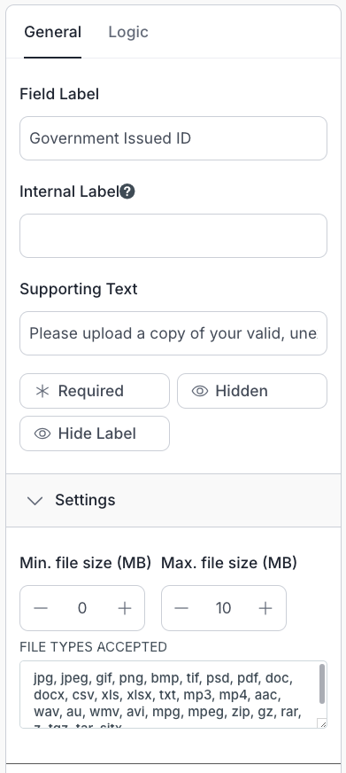 The File Upload field allows users to attach files to their form step session to use in their workflow—such as images, PDFs, and other document types. This guide walks you through how to use & customize, and file uploads in your forms.