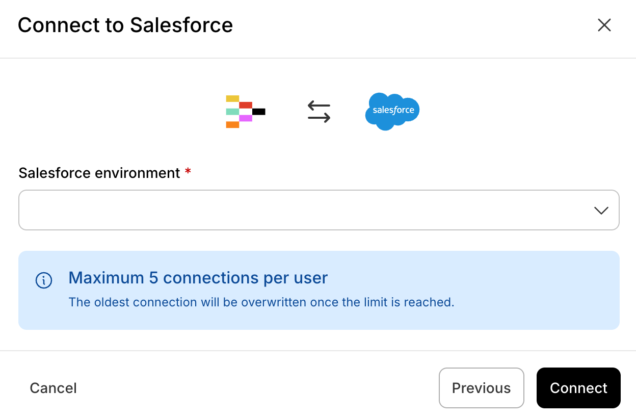 Note: If you select Custom, you'll need to enter your custom Salesforce environment URL, starting with https://.