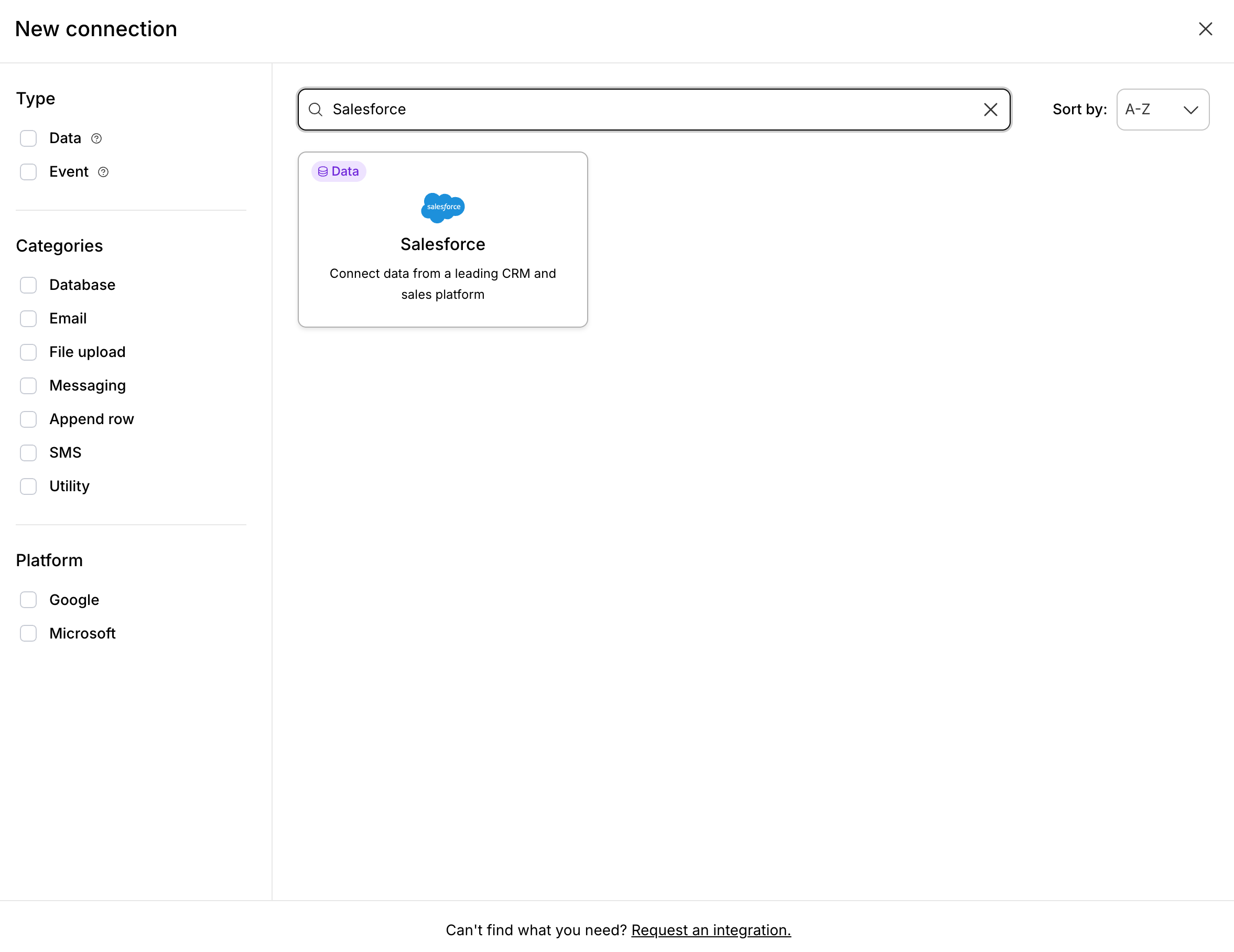 Once your Salesforce connection is active, you can start organizing your data into reusable datasets for your projects and workflows.