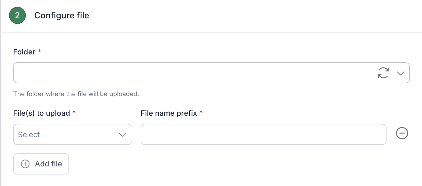Select Upload file as the action type.