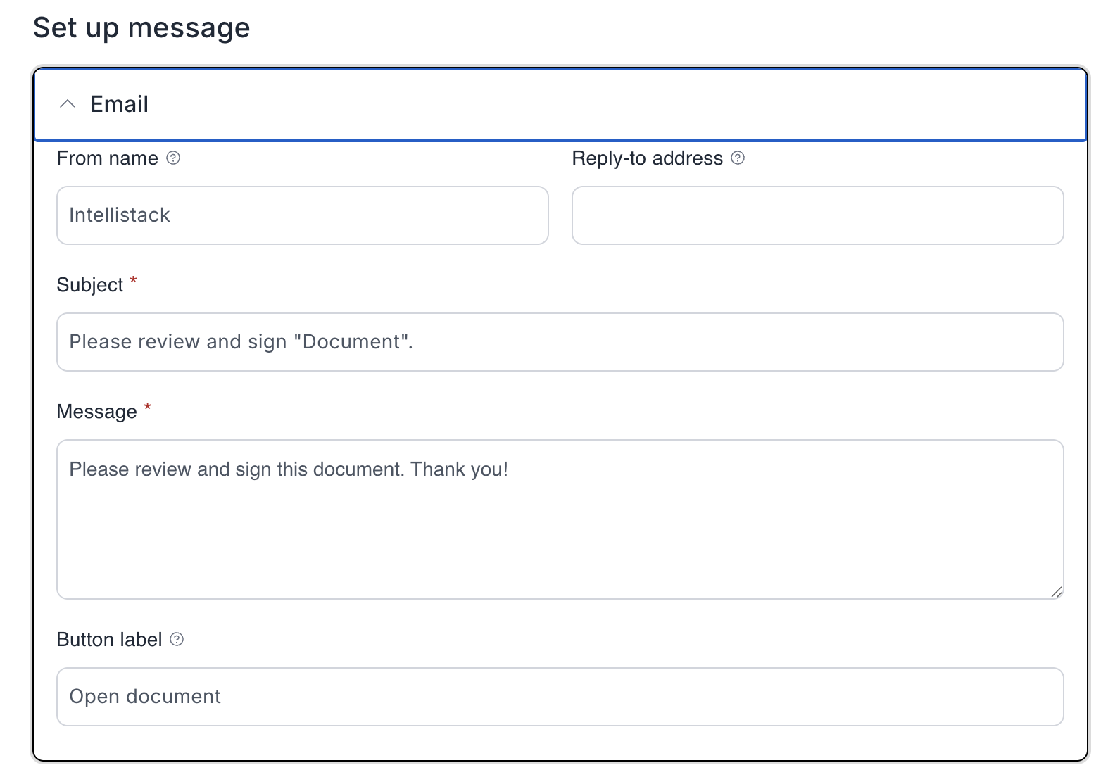 - Message Body - Write the message that appears in the email. This is a great place to add context or instructions for signers.