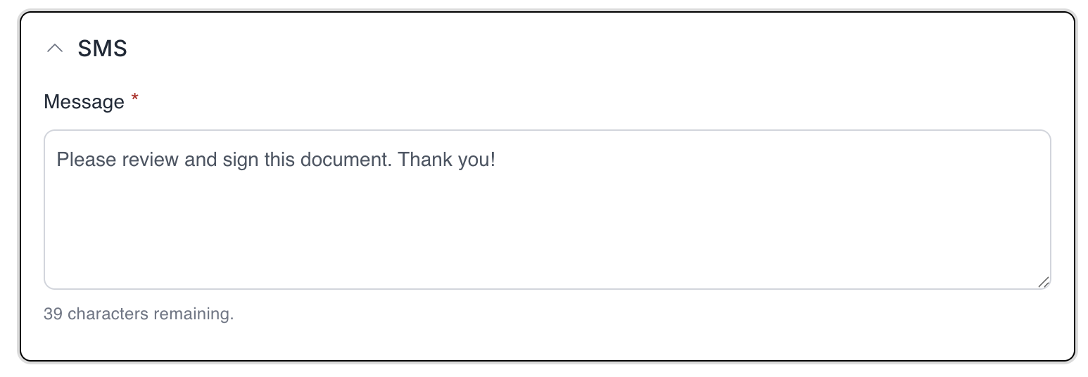 Below the delivery settings, you can customize the message that signers receive by Email or SMS: