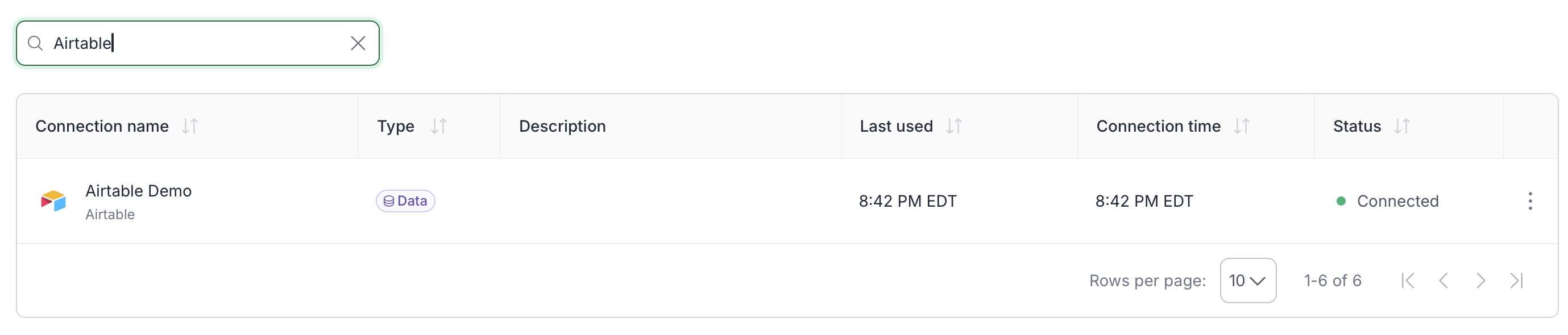 Click Connect to complete the integration. You’ll now see Airtable listed under your active integrations.