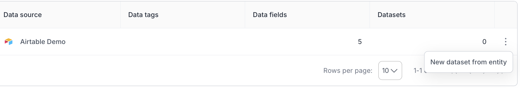 Head to Datasets, find your Airtable-based dataset, and click the three dots & Edit to: