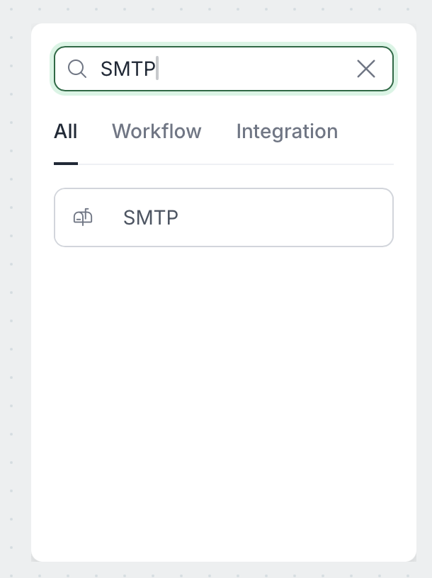 Click the plus (+) button to add a new step, and select SMTP from the integration options.