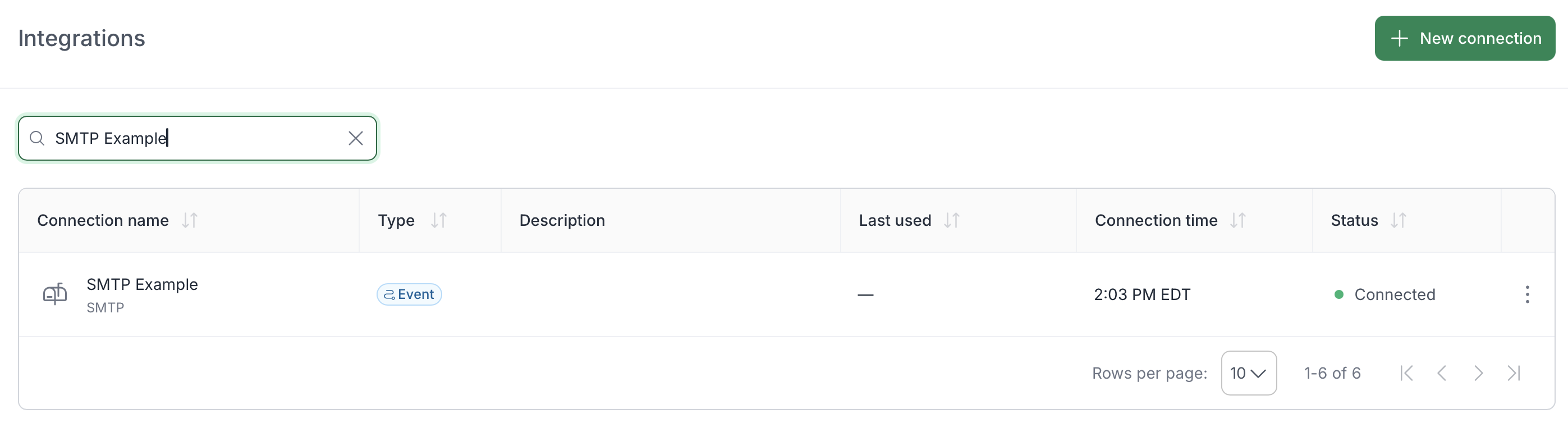 Once authenticated, click Finish. Your SMTP connection will now appear on the Integrations homepage, showing an Active connection status.