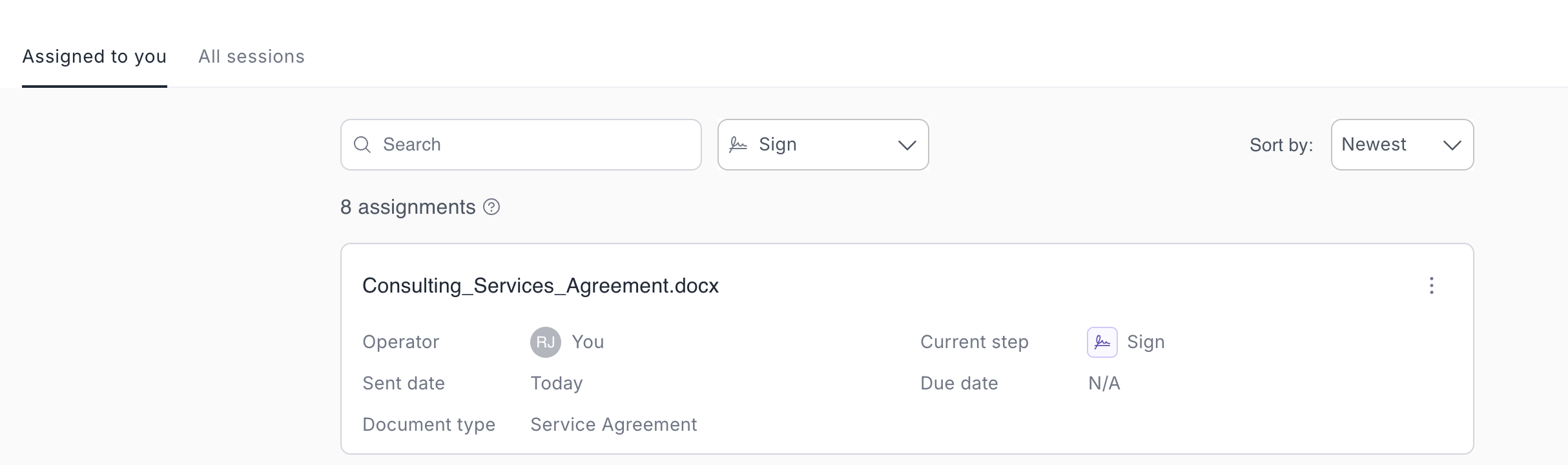 🔍 Only documents where you’re assigned as a signer will appear here.