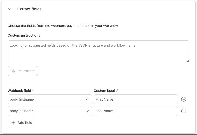 - Use Re-extract to send new payloads and update field mapping as your schema evolves.