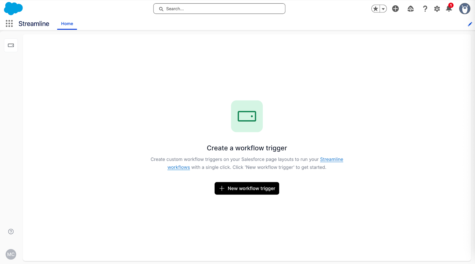 - The workflow trigger button – Launches your configured Streamline workflow