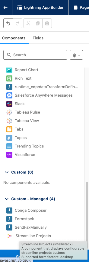 After creating the workflow trigger in the previous steps, you need to add it to a Salesforce record page layout by adding the Streamline Project Lightning Web Component (LWC) to make it visible and functional for users. Important: When you place this component on a page, it automatically provides two integrated features: