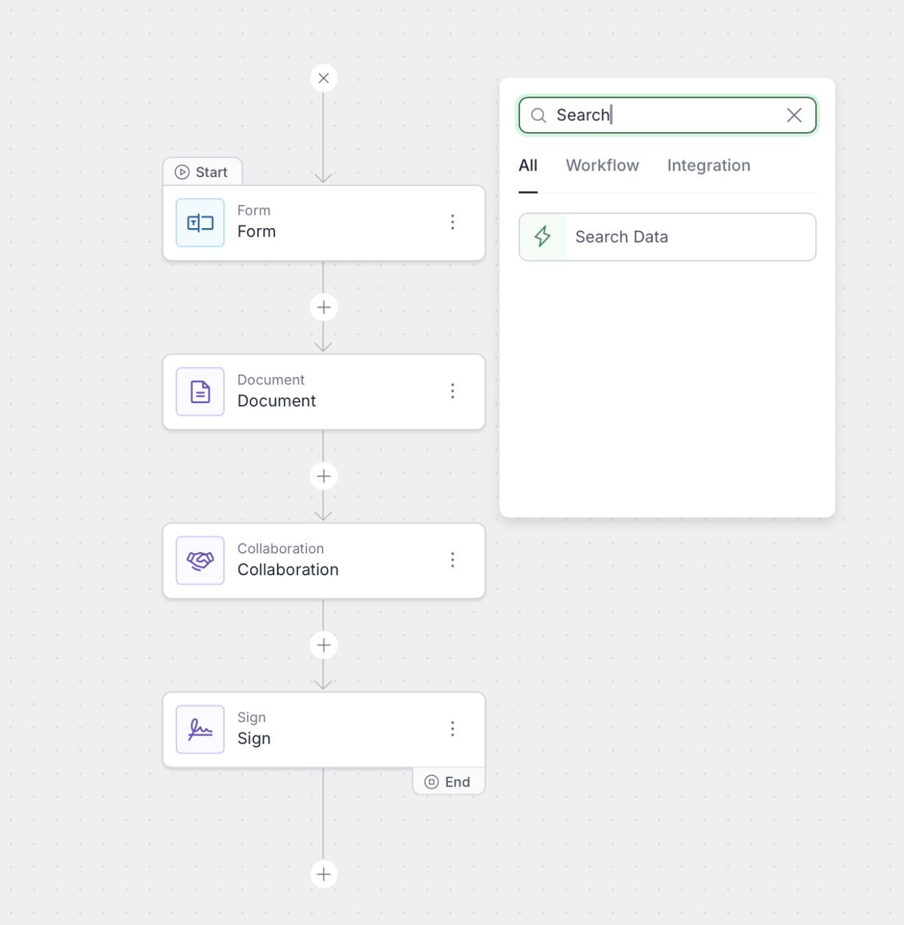 The Search data step helps you build workflows that don’t just collect data, but use it intelligently. With modular search, activation, and display options, you can create powerful workflows that are: