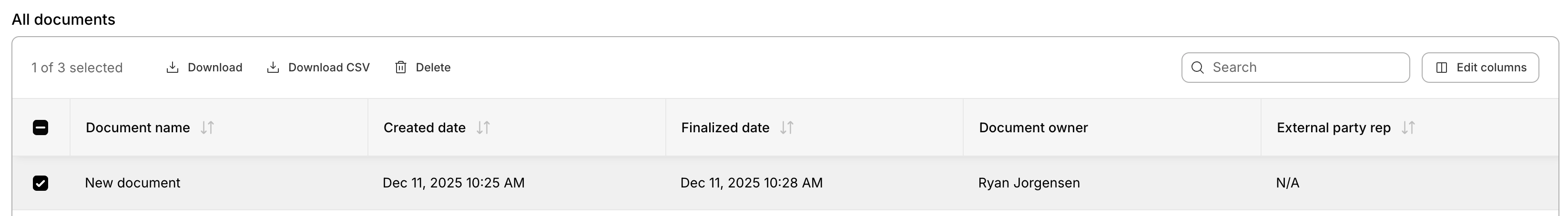 ⚠️ Deleting a document is permanent—be sure before confirming.