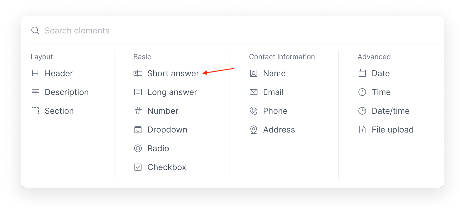 - From the Basic Fields section, select Short Answer.