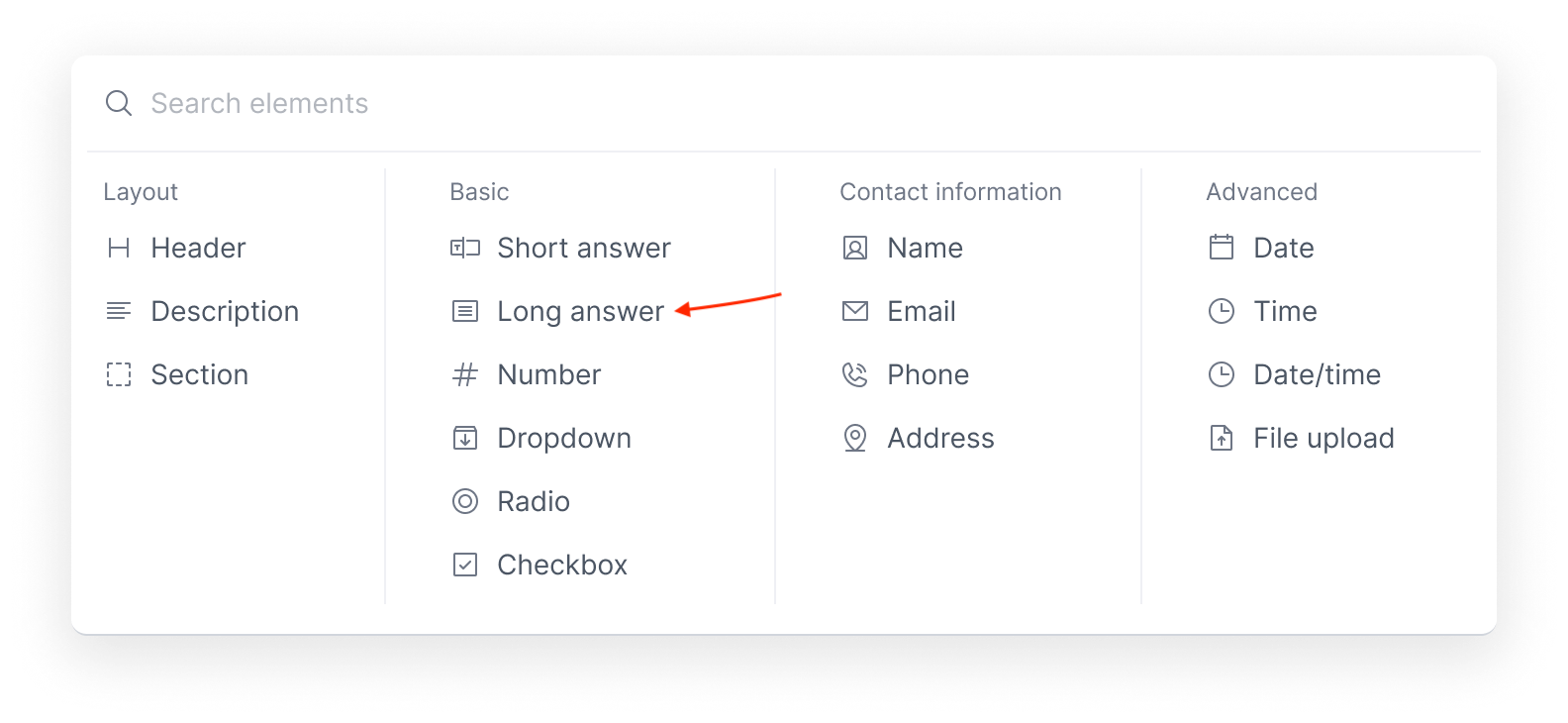 - From the Basic Fields section, select Long Answer.