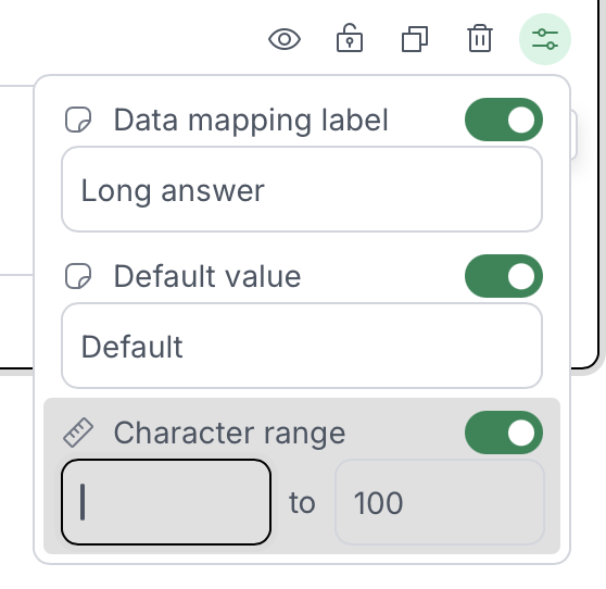- Character Range: Set a minimum or maximum character limit for responses.
