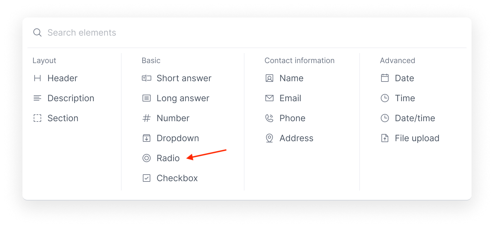 - From the Basic Fields section, select Radio Button.
