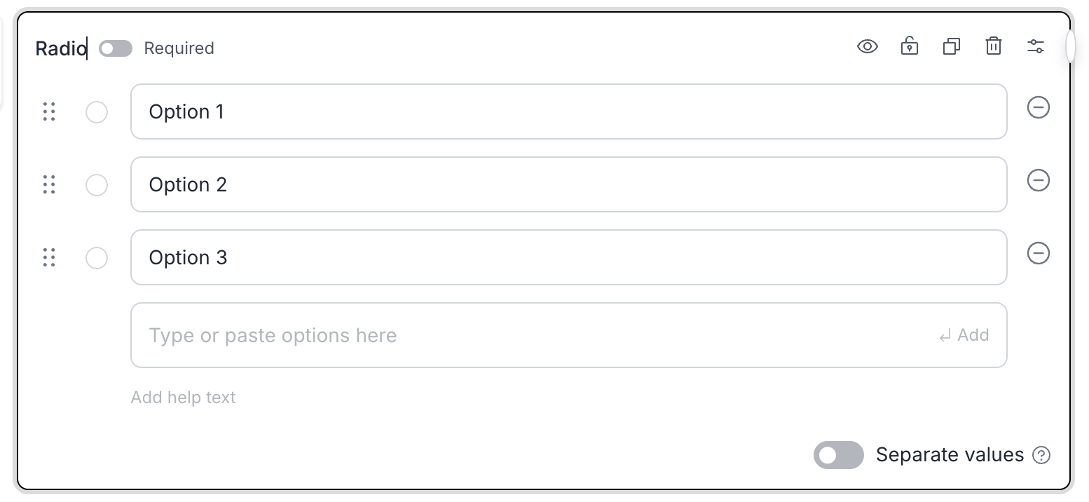 - Toggle Use Separate Values if you want to assign internal values to each option for data mapping or automation purposes.