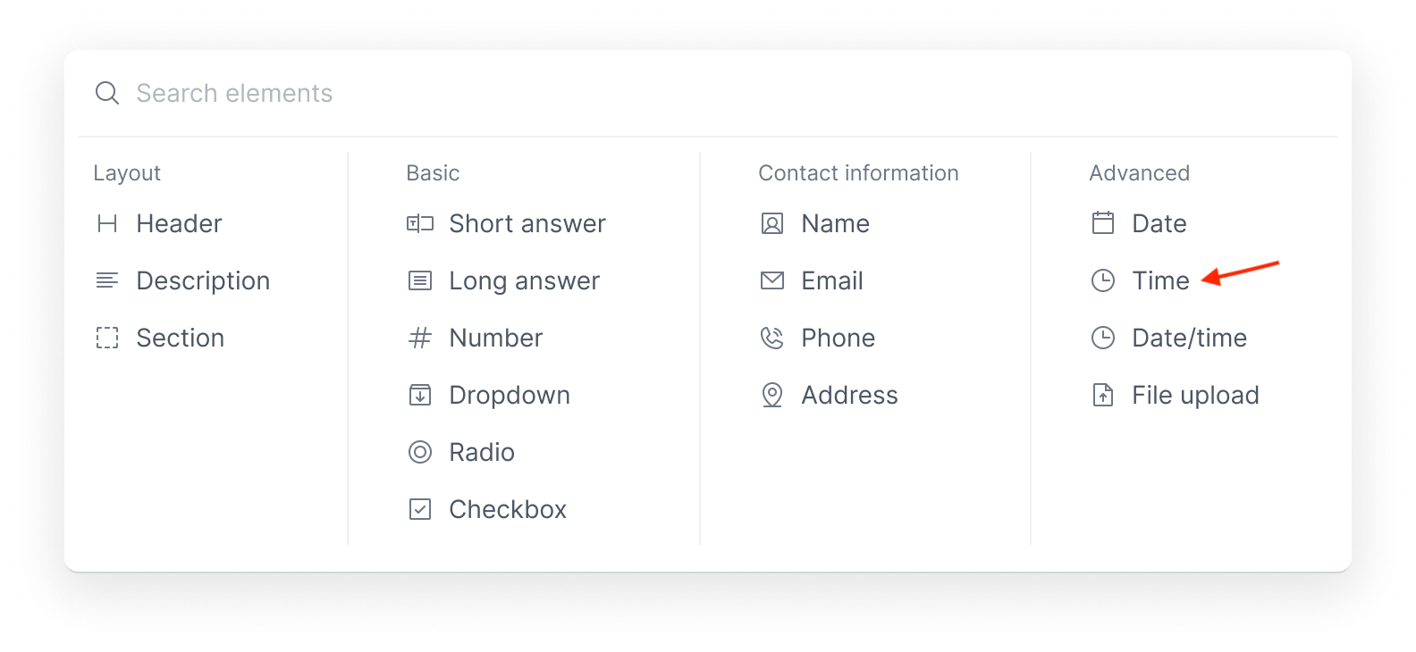 - Use descriptive field titles to clarify what time is being requested (e.g., “Arrival Time,” “Interview Time”).