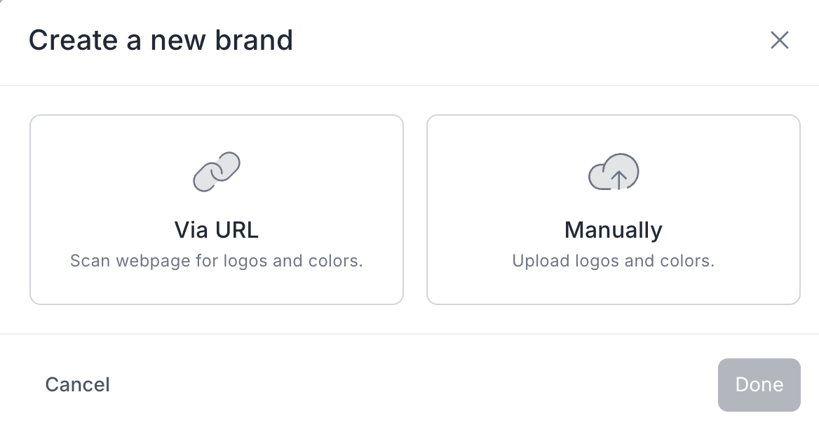 - Scan a webpage URL to automatically pull the logo and color values, or