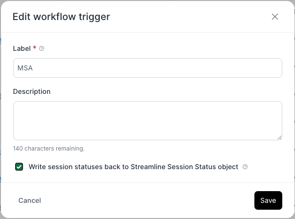 Important: If this setting is not enabled, session statuses will not be written to Salesforce and therefore will not be visible in the LWC status table. This setting can be enabled when you first create the workflow trigger or added later by editing an existing trigger.