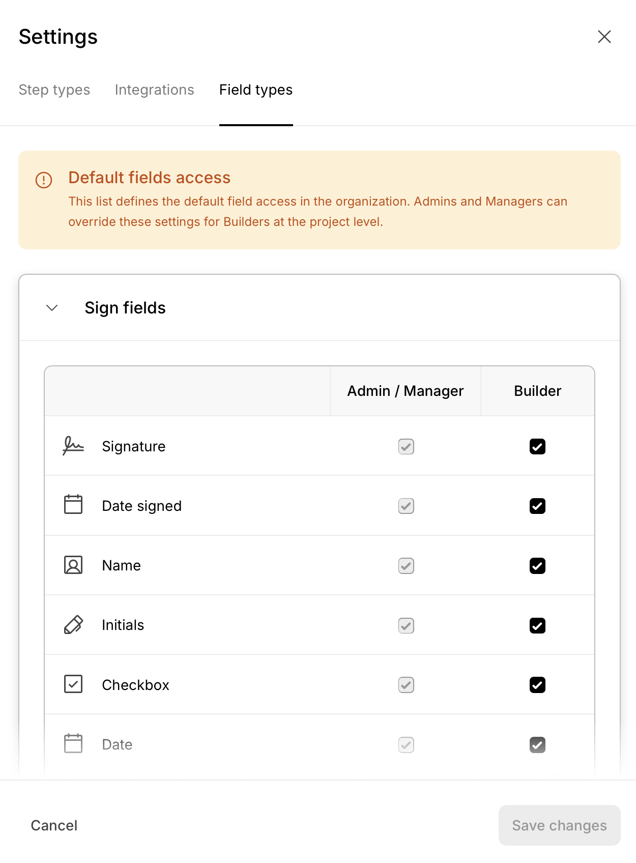 Admins and Managers can override these settings for Builders at the project level.