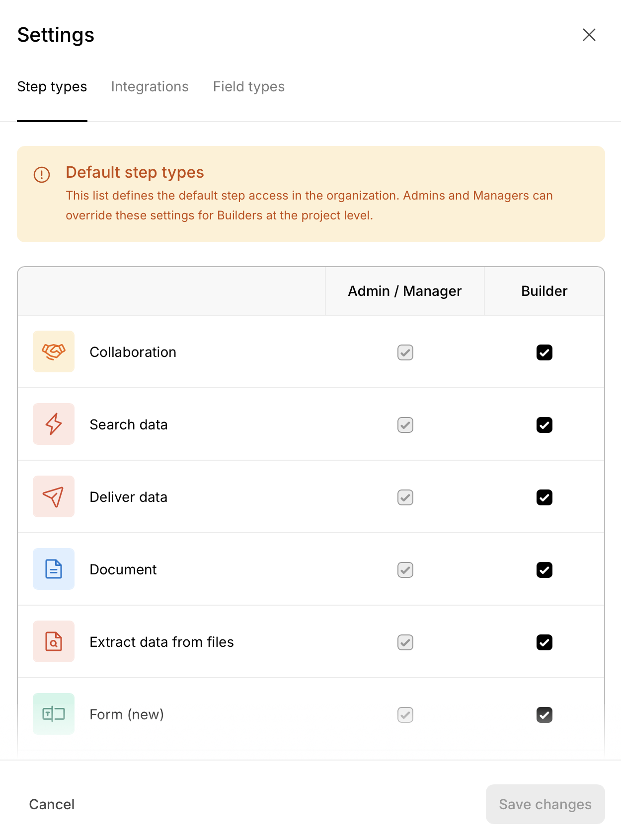 This setting defines the default step access across the organization.